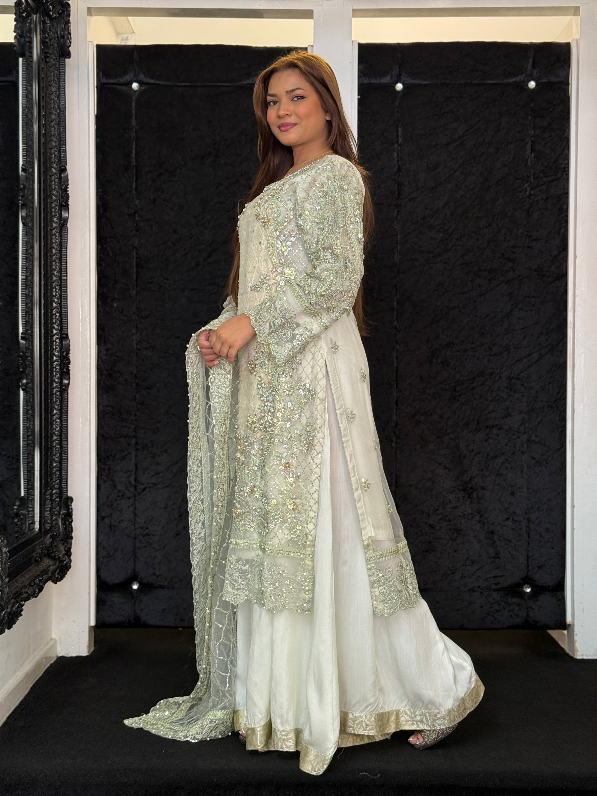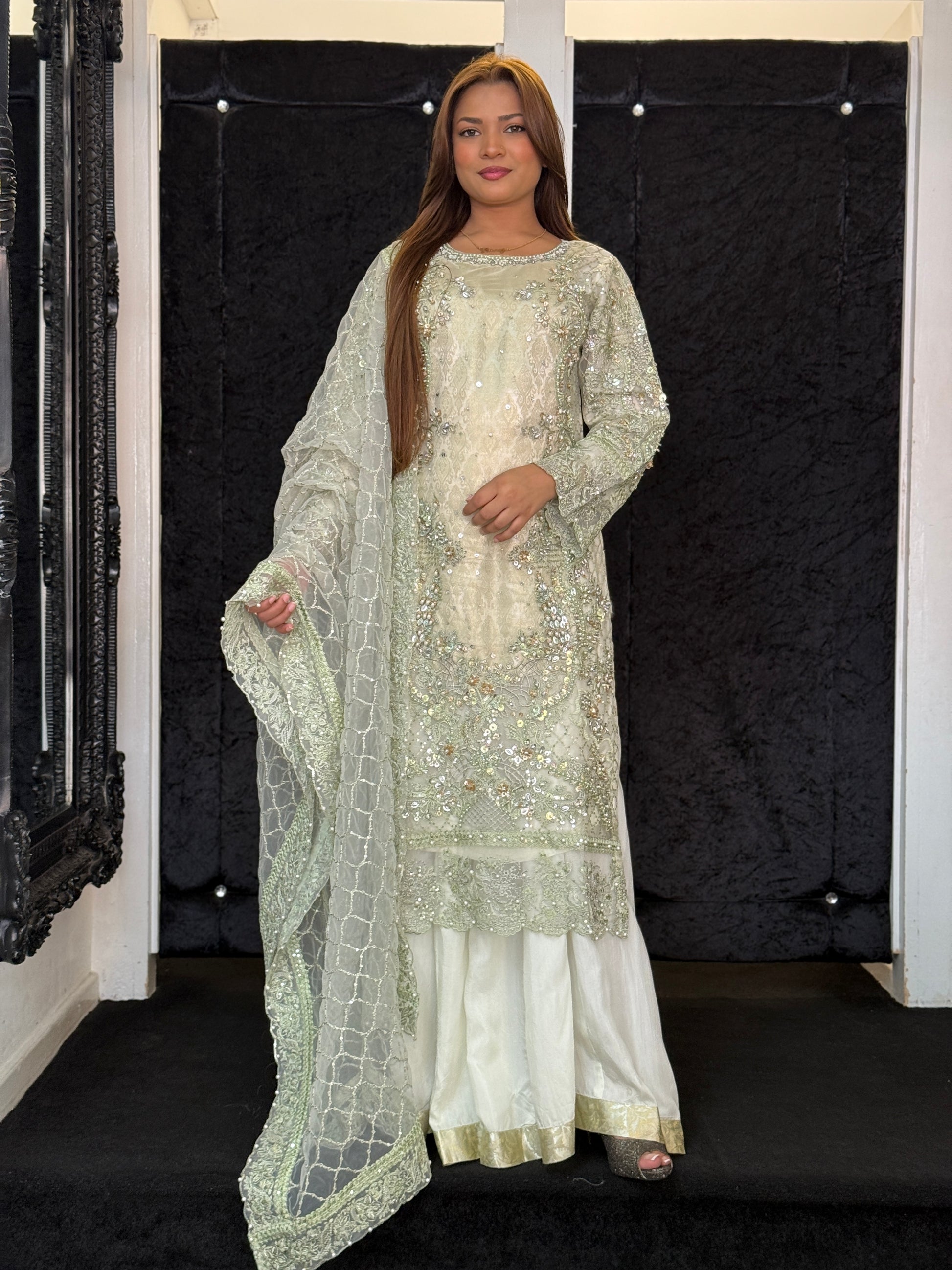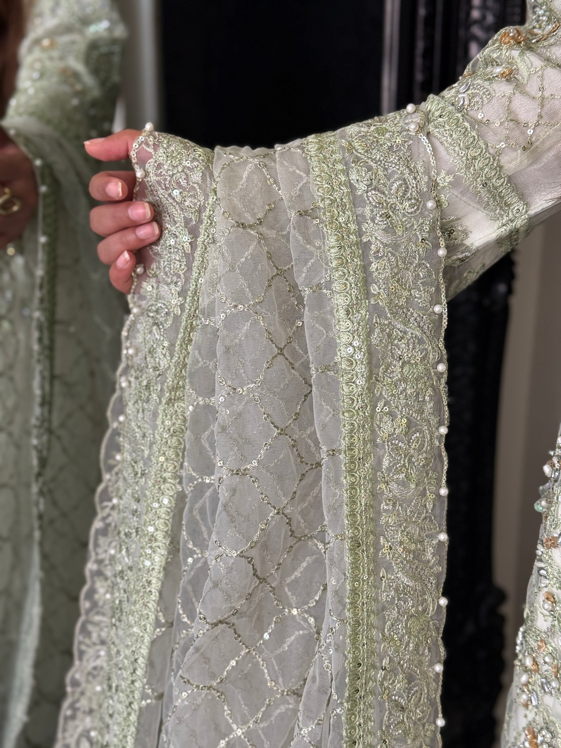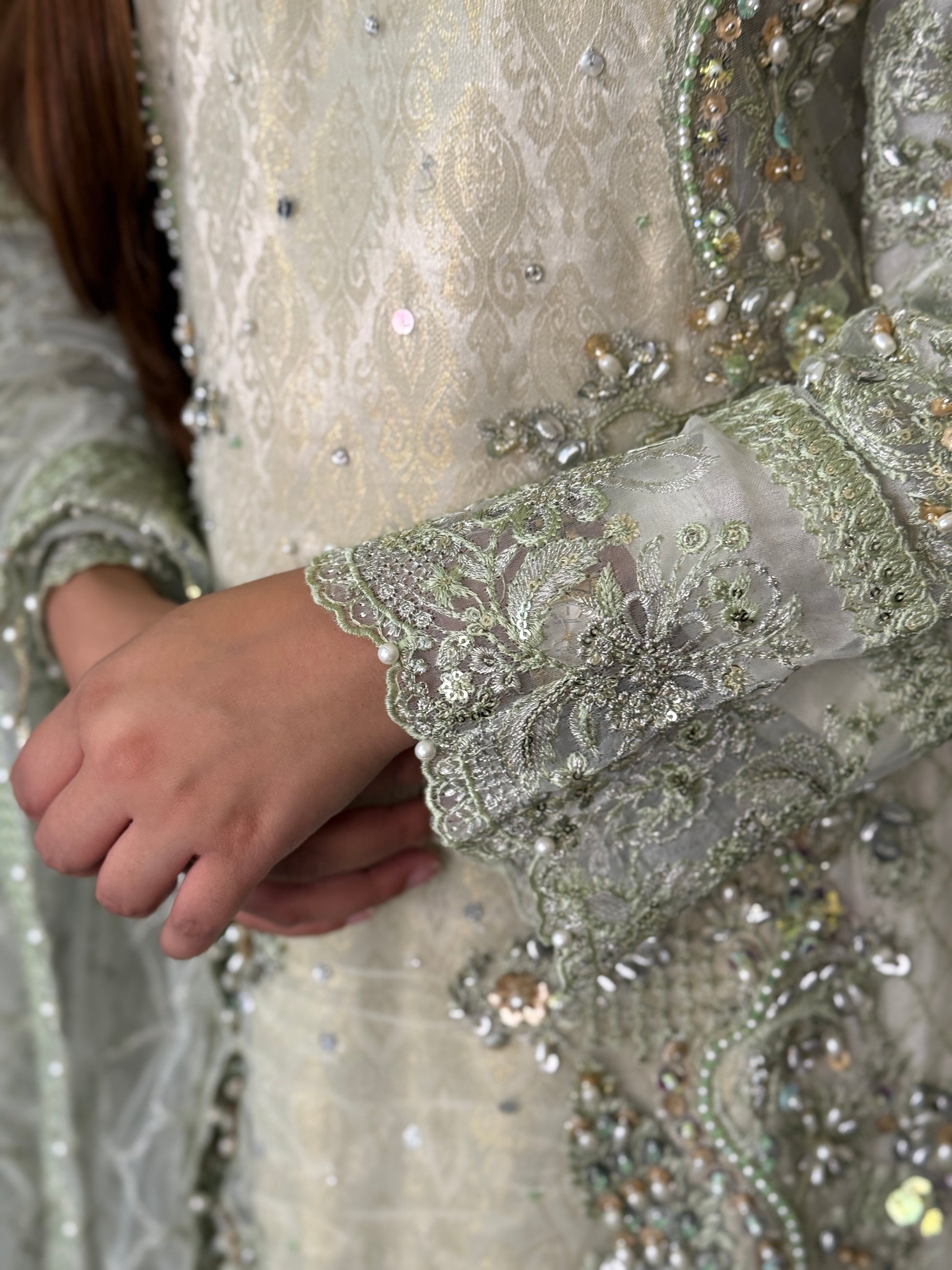 Sage Green Hand-Embellished Formal Ensemble – Limited Stock