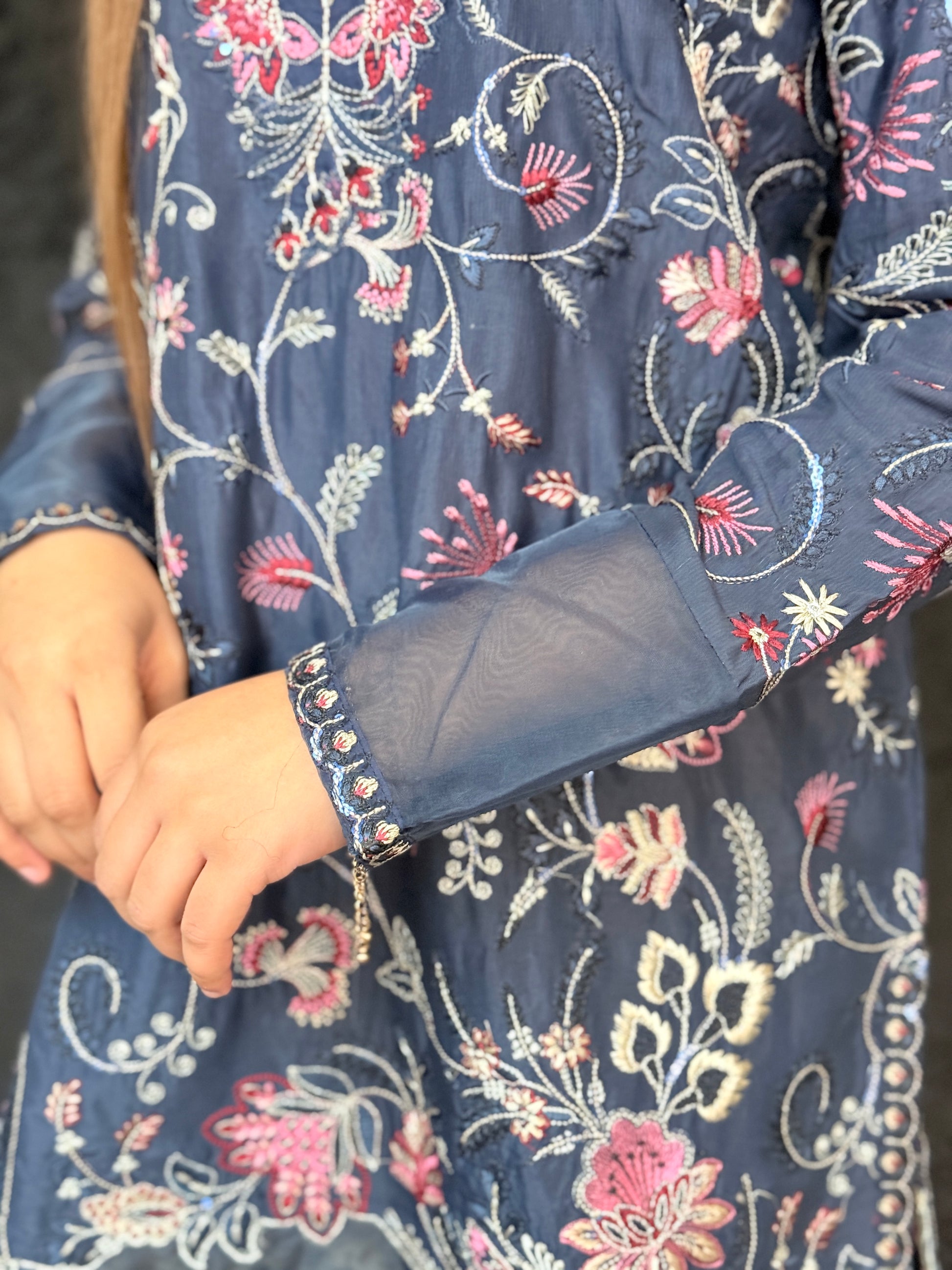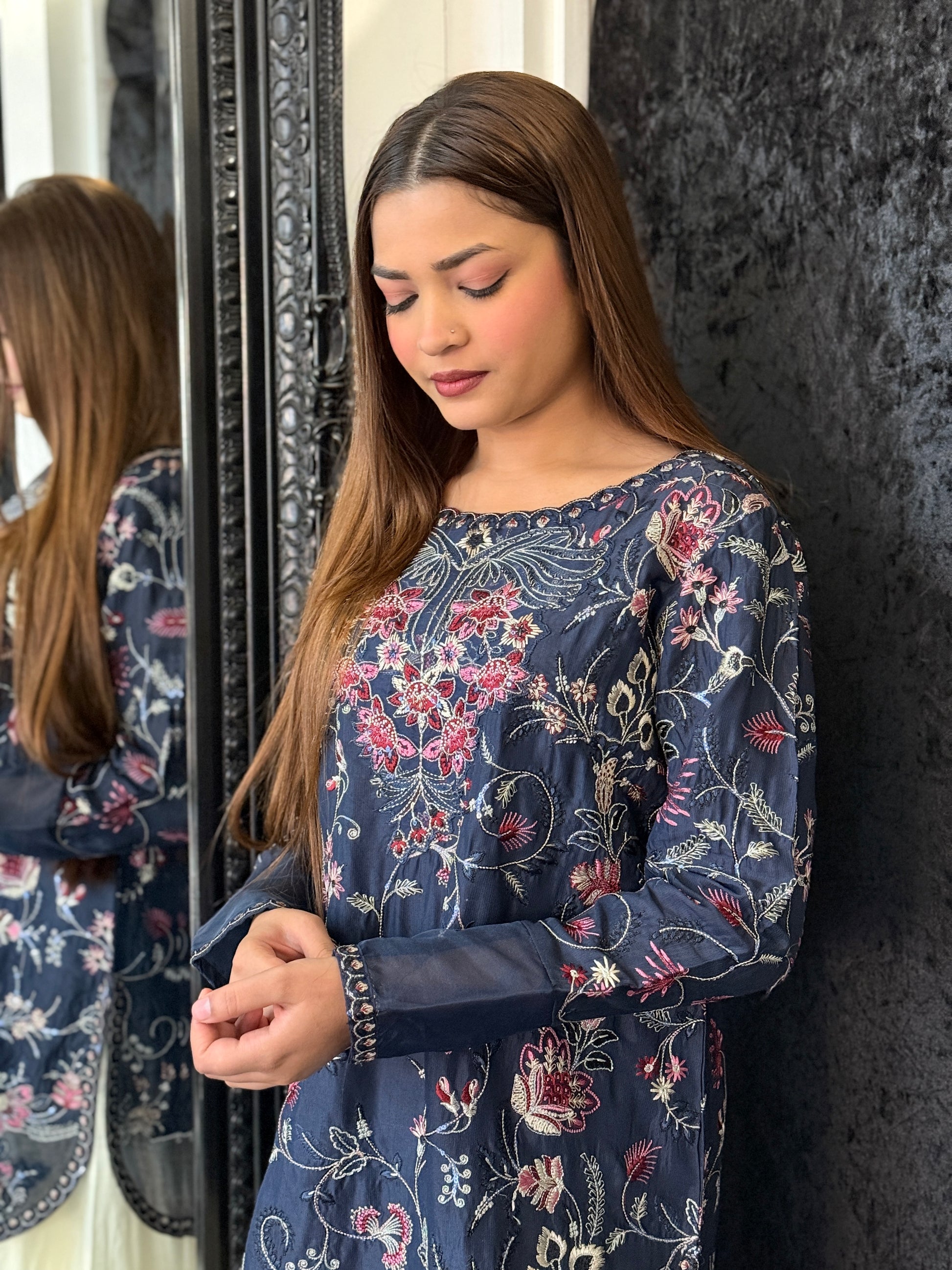 Step into elegance with our 2-Piece Pret set in a luxurious Midnight Blue. Crafted from premium Viscose Kattan and Grip fabric, this ensemble exudes effortless grace and sophistication. Perfect for any occasion, it offers a blend of comfort and timeless style.