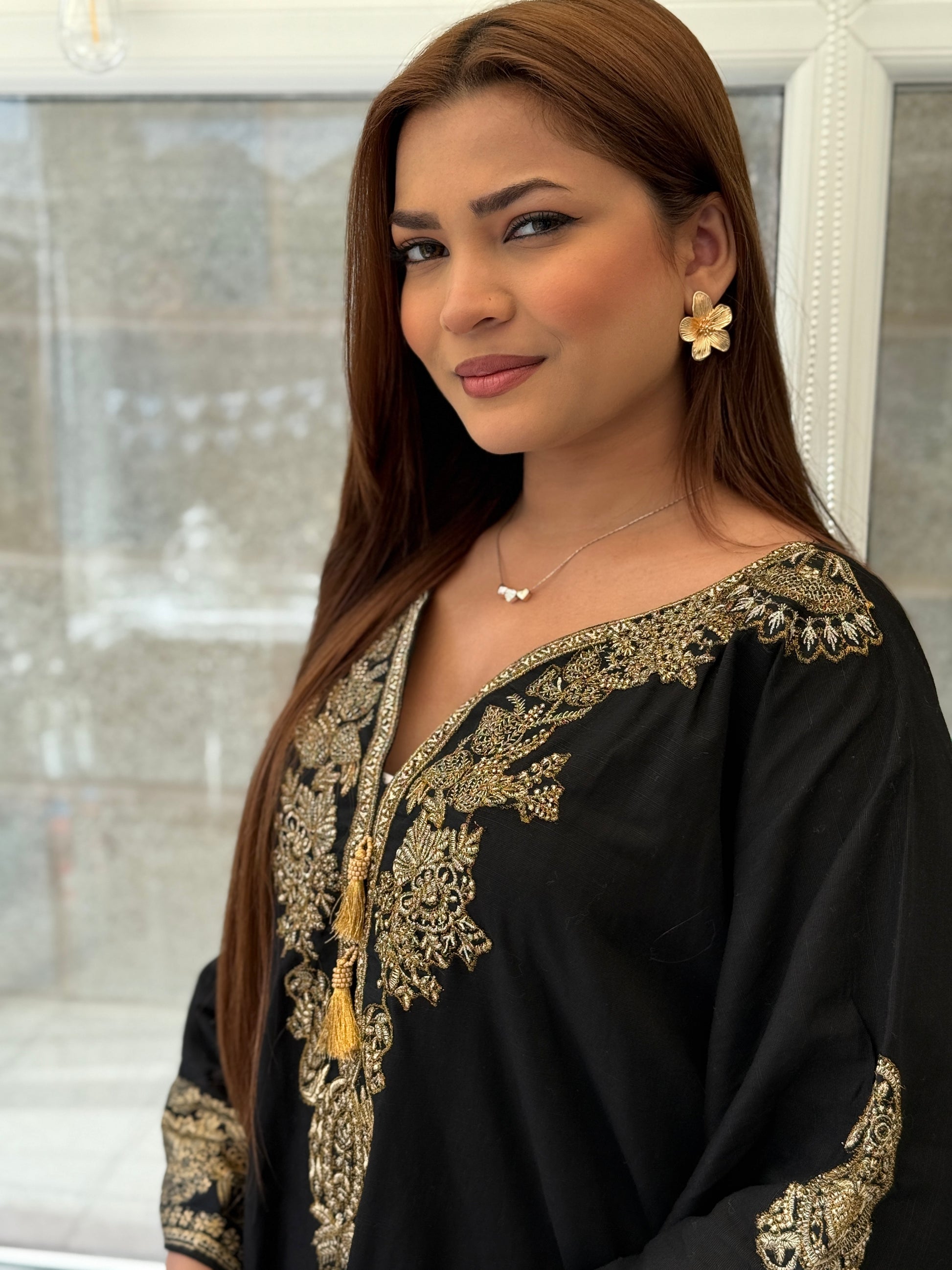 ✨ Noir Majesty – Embroidered Kaftan ✨