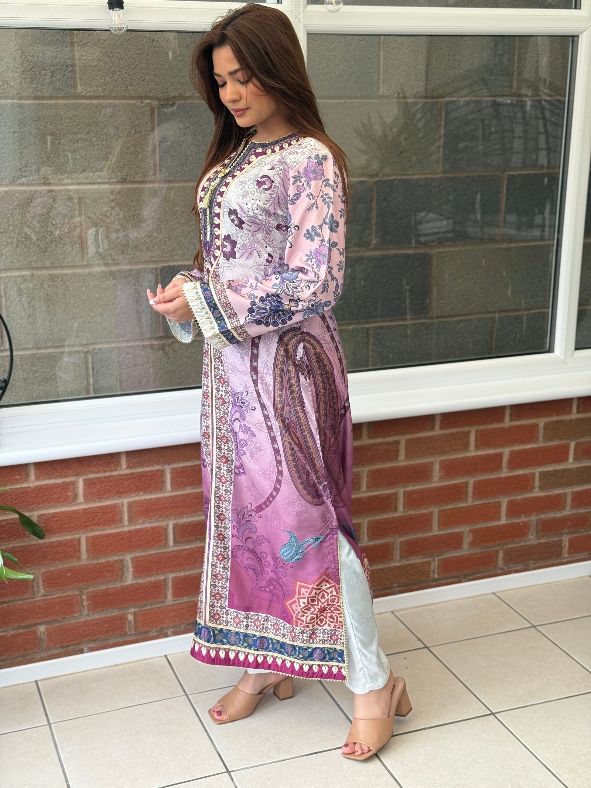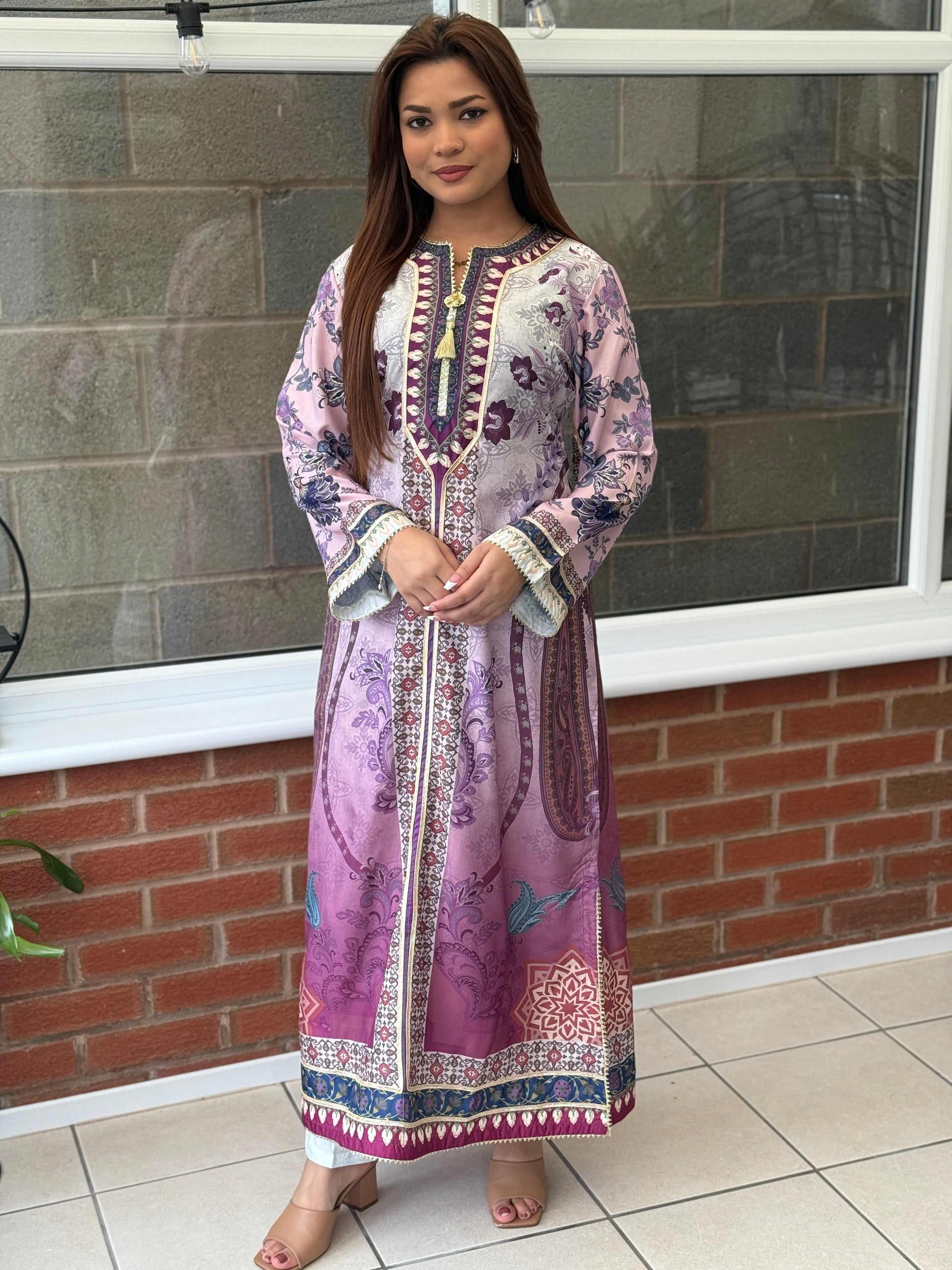 Made on soft crepe fabric with delicate gota detailing on the neckline, finished with an elegant tassel for that luxe touch.