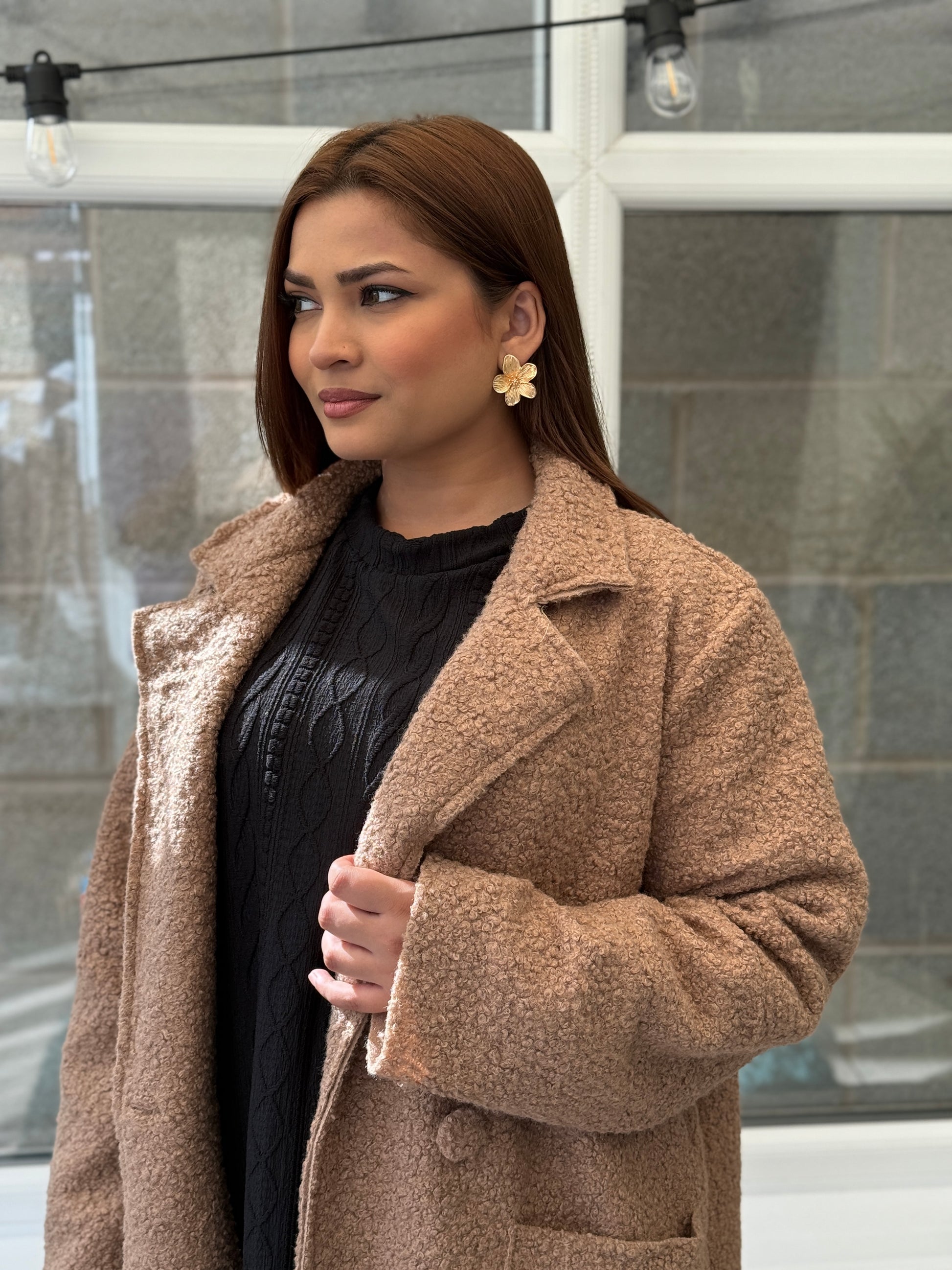 Wrap yourself in effortless style and cozy comfort with our Chocolate Dream Teddy Coat.