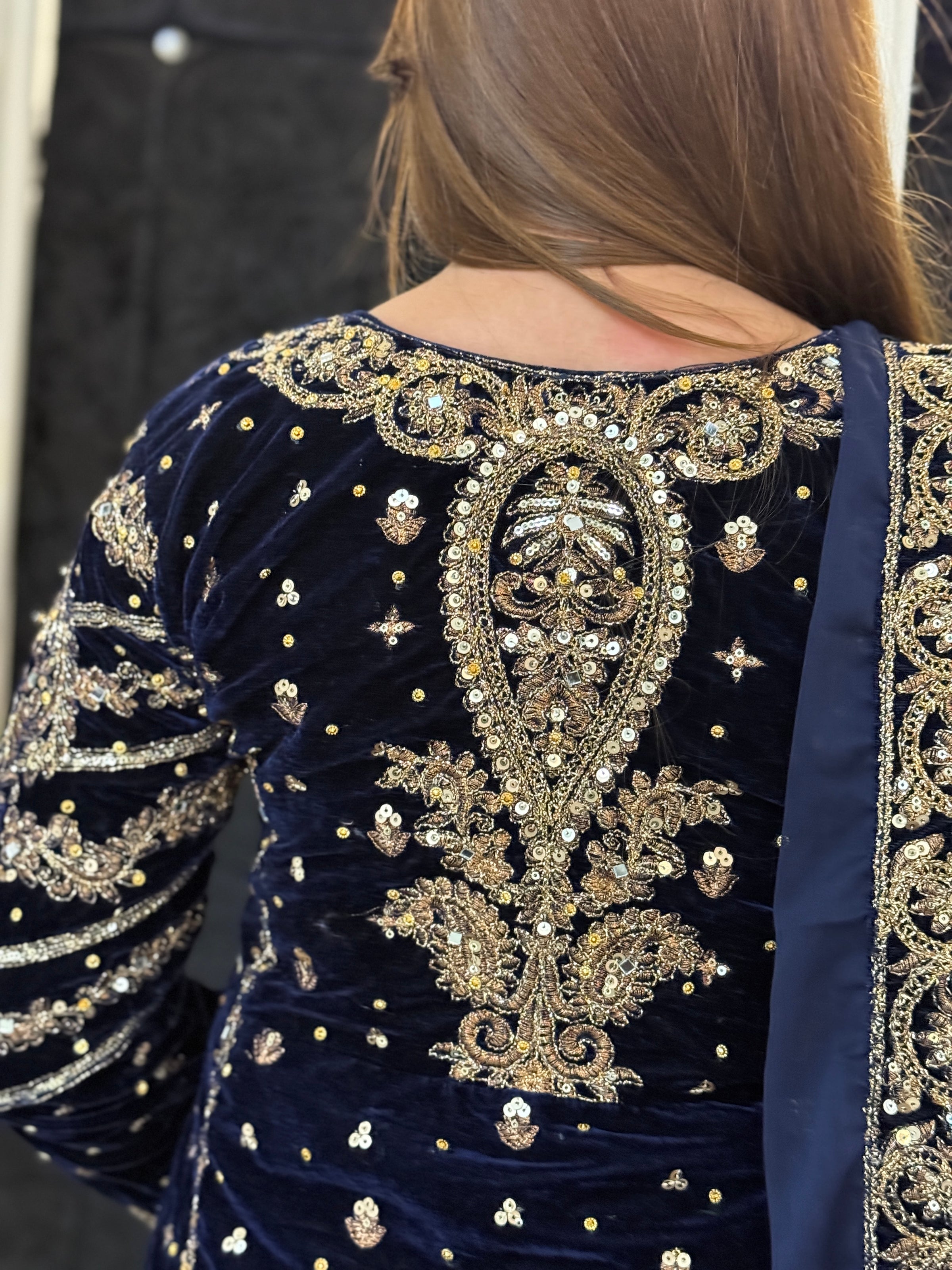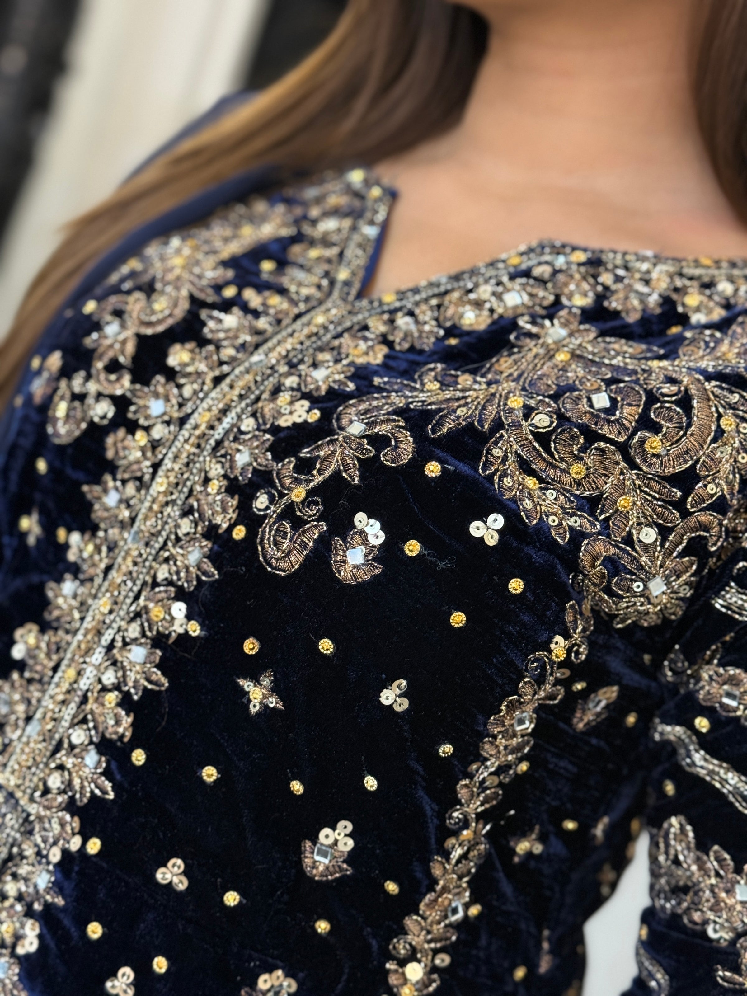 Zeenat Royale - Navy Velvet & Jamawar Suit